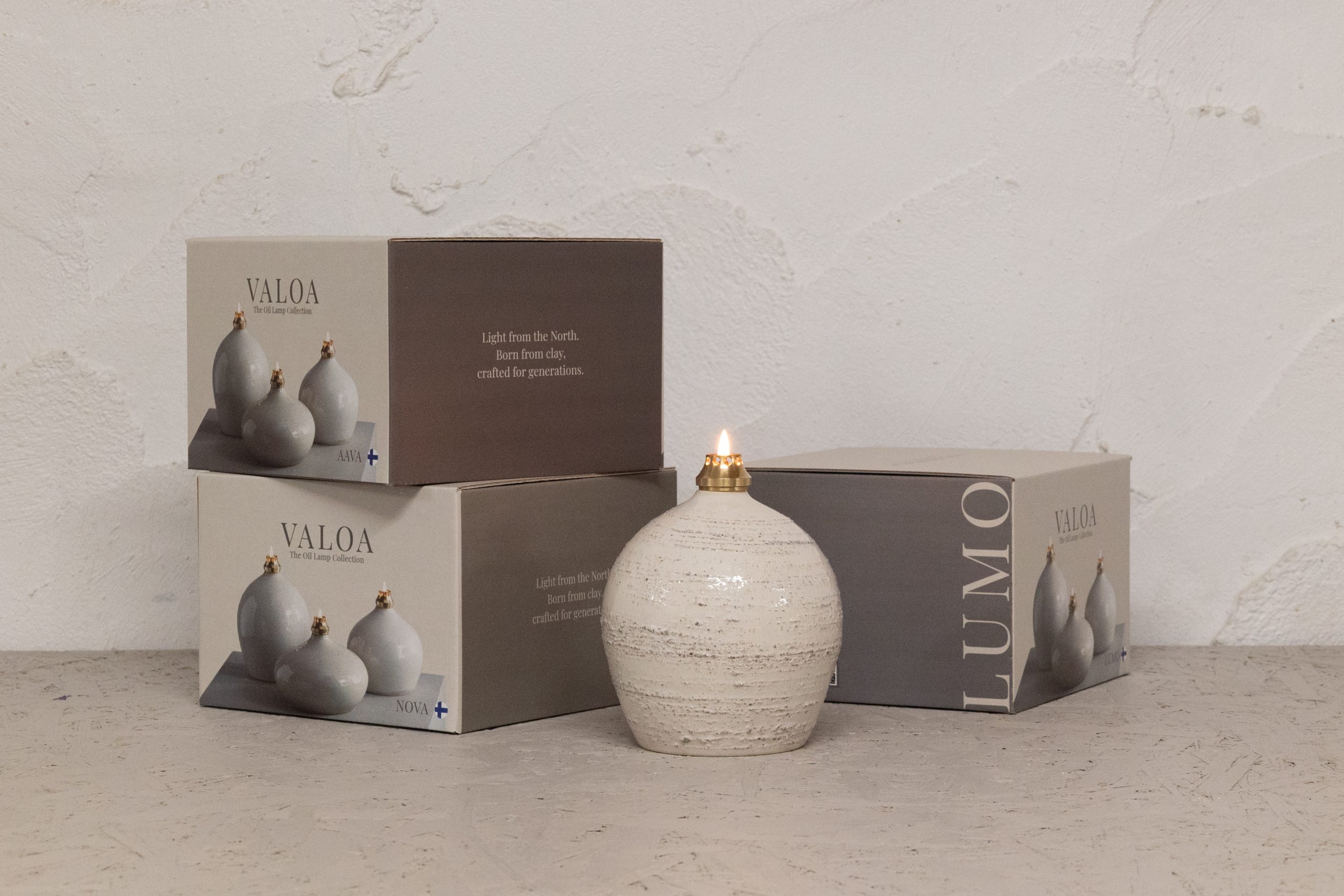 Lumo on valon ja rauhan lähde. Sen luonnollinen muoto ja yksityiskohdat heijastavat käsityön kauneutta. Lumo valaisee lempeästi ja kutsuu pysähtymään. Öljylampun toimintaperiaatteena on kapilaari-ilmiö, jossa sydänlanka johtaa lamppuöljyä säiliöstä liekille. Öljylamppu on helppokäyttöinen. Se palaa pitkään ja tuottaa puhtaan, rauhallisen liekin.
